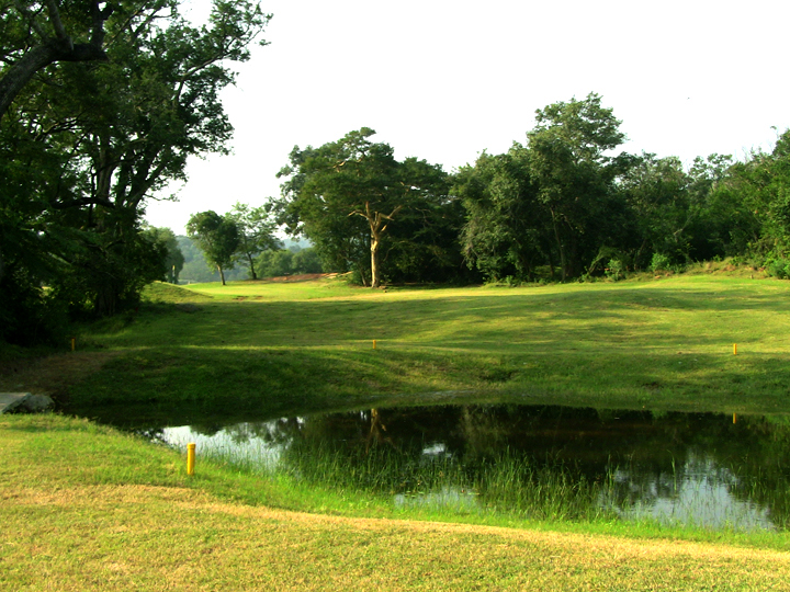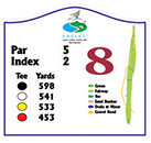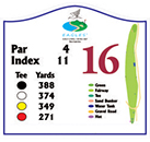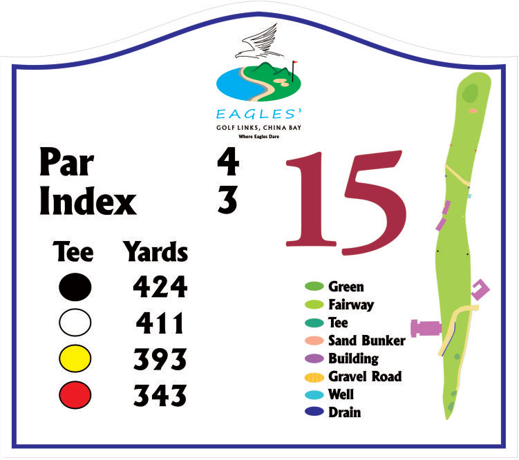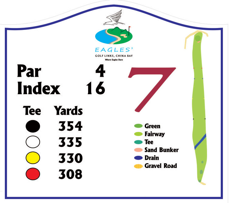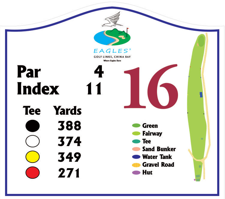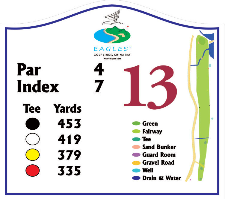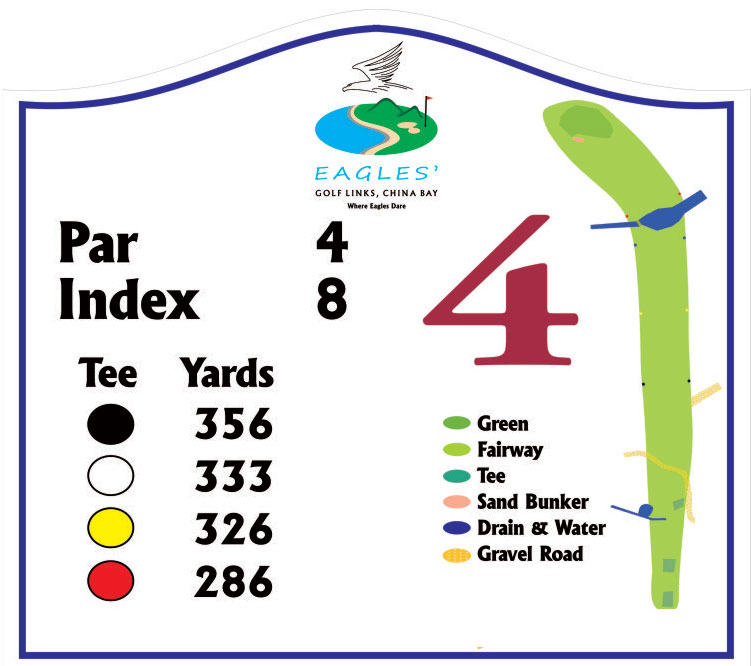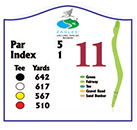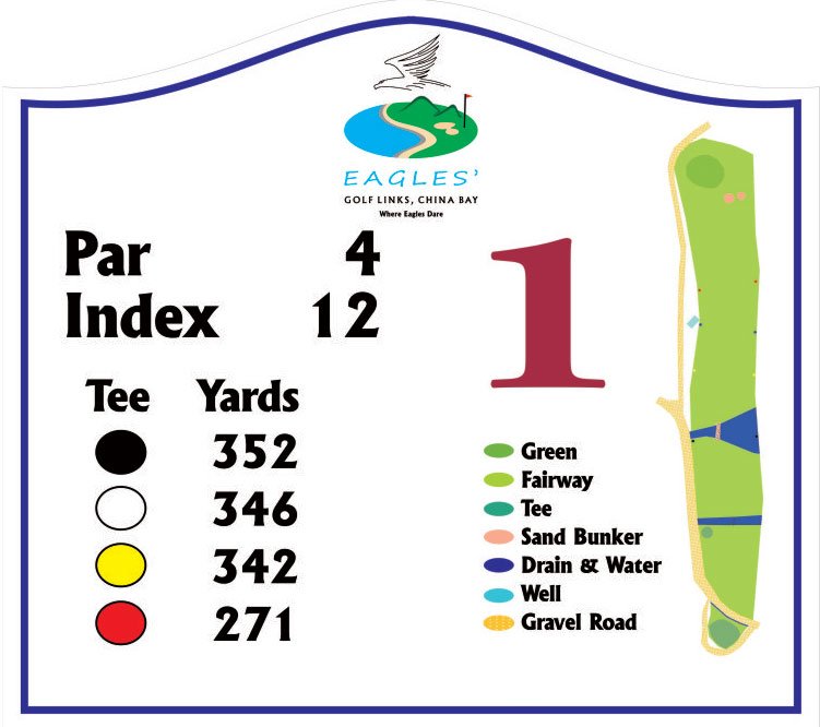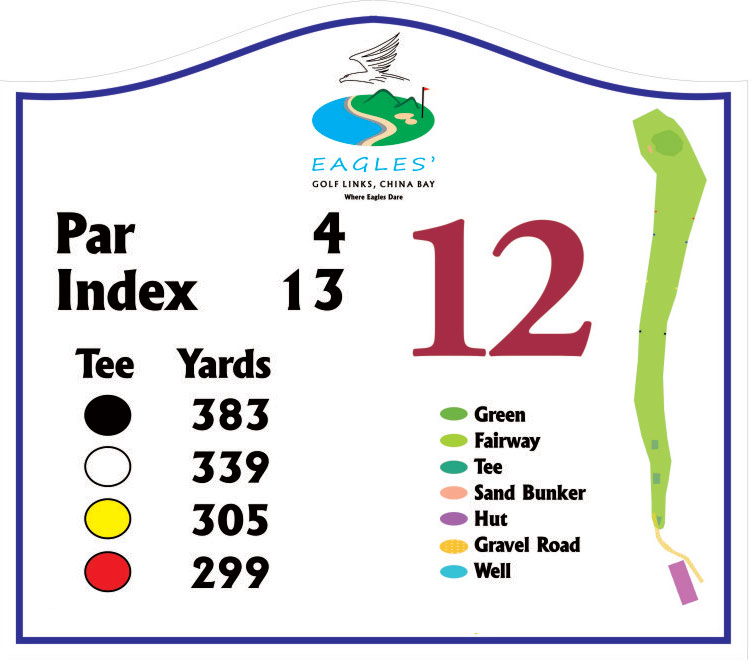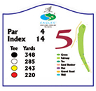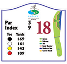| The tee shot needs to be long and accurate as the fairway is tree-lined and will punish any errant drives. The water hazard crossing the fairway on the approach to the green must be avoided if a stroke is not to be dropped on this strong Par 4 hole. | ||||||