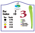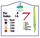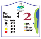 | A fairly straightforward drive and pitch will set up par. The trees on the fairway must be avoided, and the approach to this elevated green calls for good judgement of distance. To fall short of the green will almost certainly mean a dropped stroke. | ||||||||||||||||||