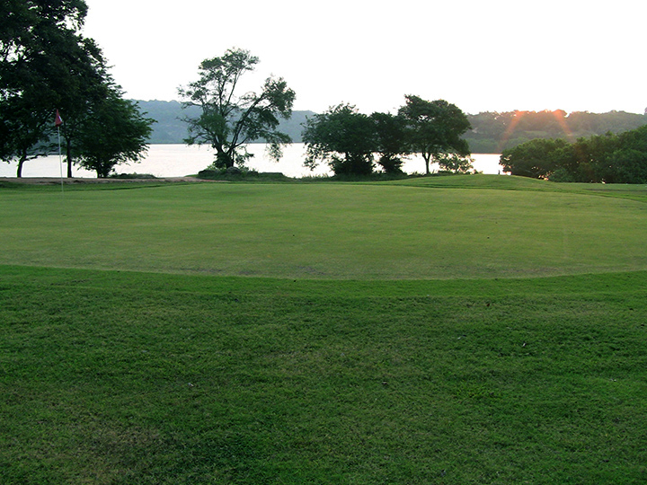 | Another testing Par 4 which doglegs to the right. The best line to the green is from the left side of the fairway, but the trees and shrubs to the left must be avoided. The area beyond the back of the green is Out of Bounds. The hole demands a strong drive and an accurate mid-to-long iron to make par. | ||||||