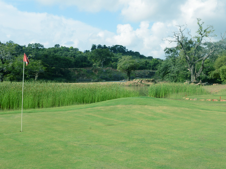 | This hole skirts Bambara House, and the view from the tee is magnificent. The green is located lower down and demands a well-struck iron to achieve par. | ||||||